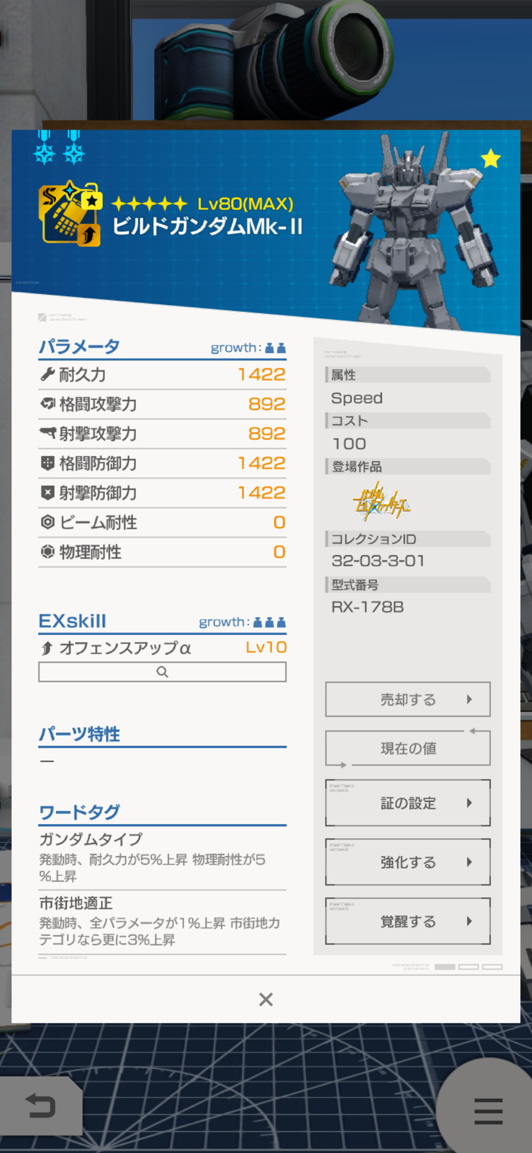 この、イベントパーツがあればあとは何を付けてもいい(射撃値を盛らないとダメですが・・・)ので楽だと思います。