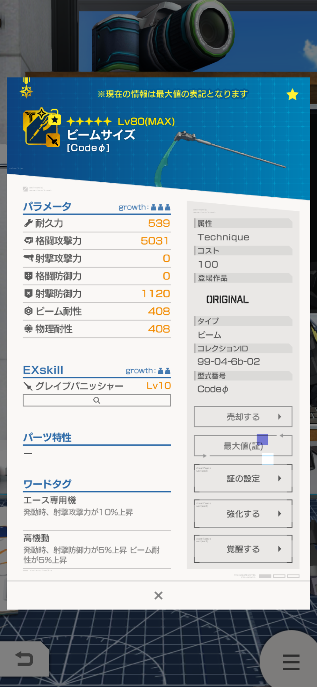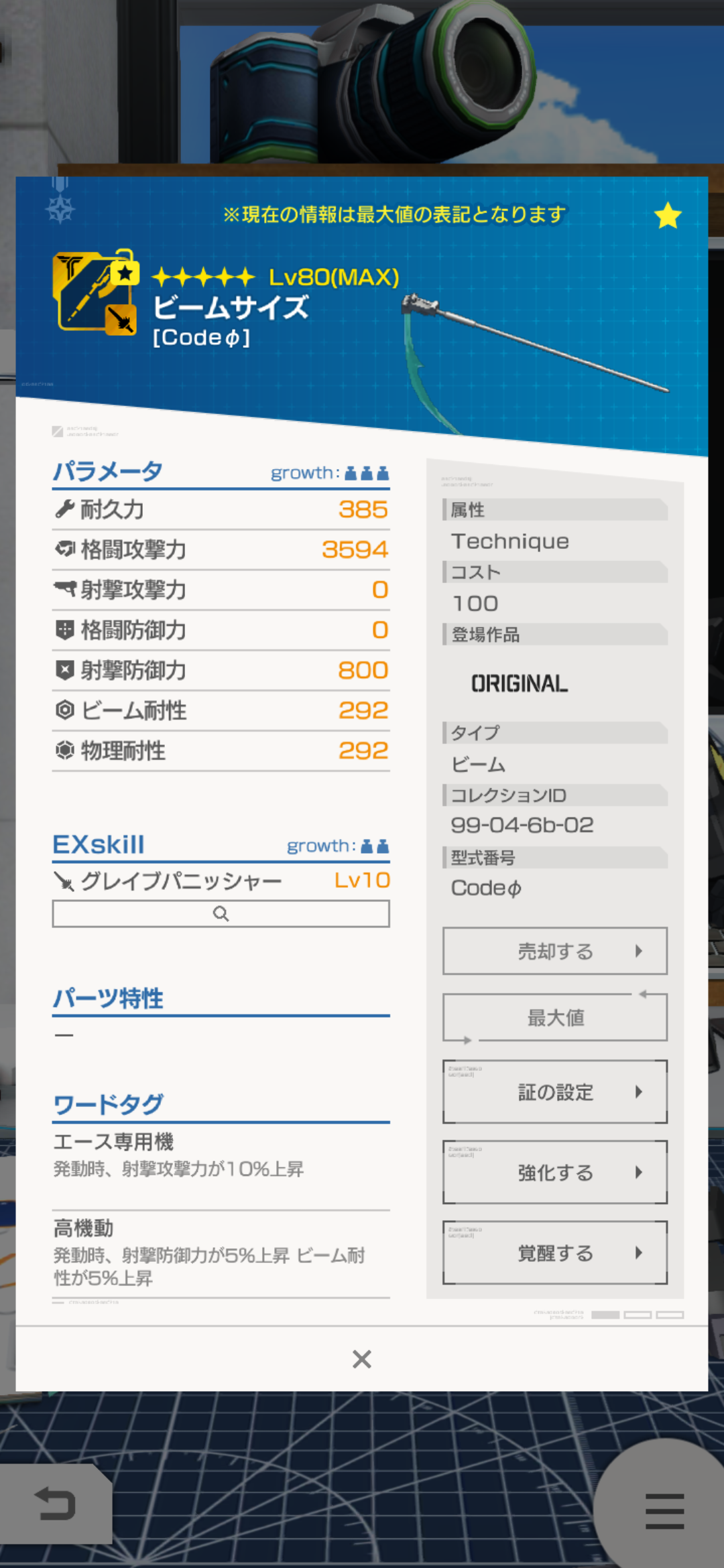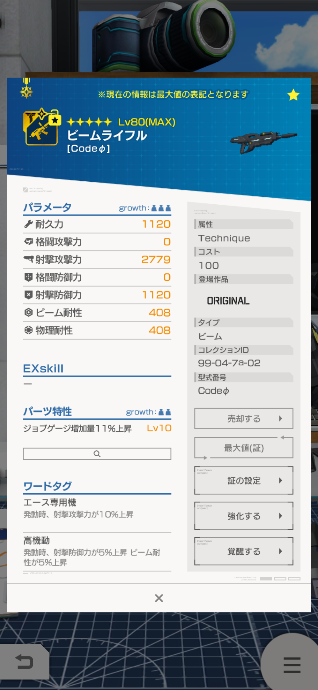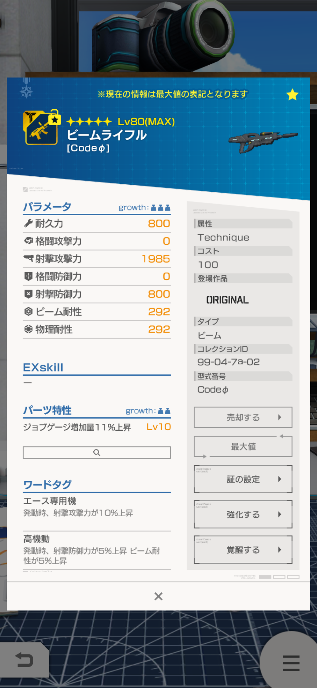 かなり通いましたが、部位の中で1番使えるであろうCodeΦの腕のスキルがMAXになりました(笑)