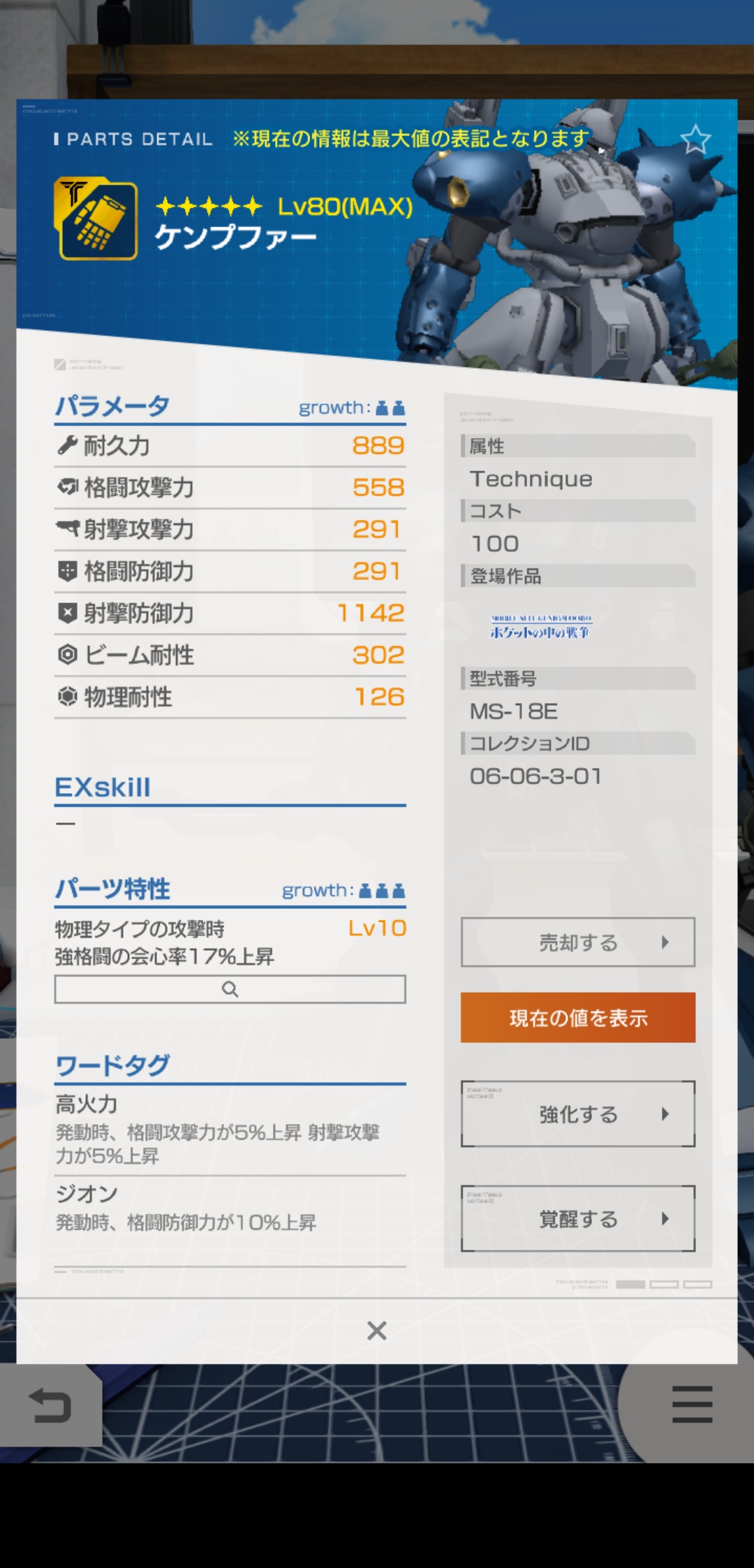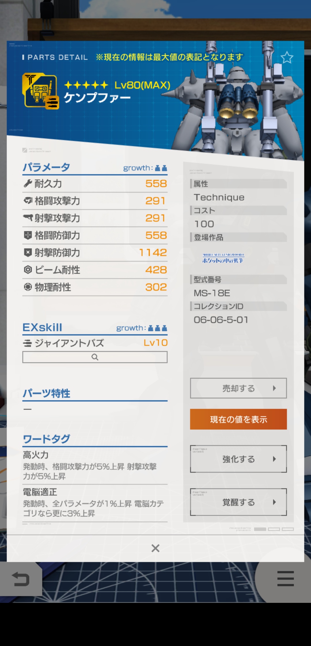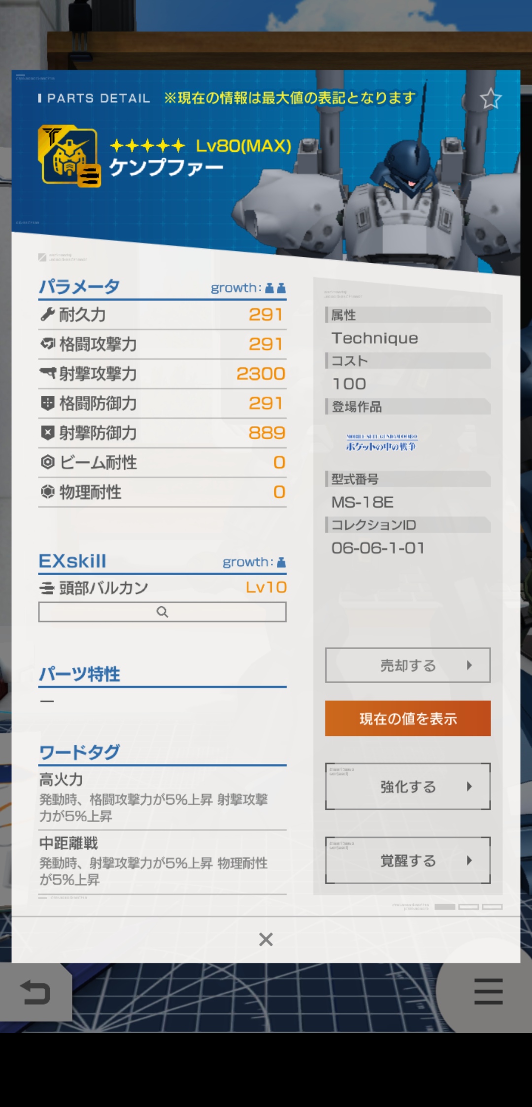 おっちゃん的には、頭部の射撃攻撃力と足のスキルが使えますね!