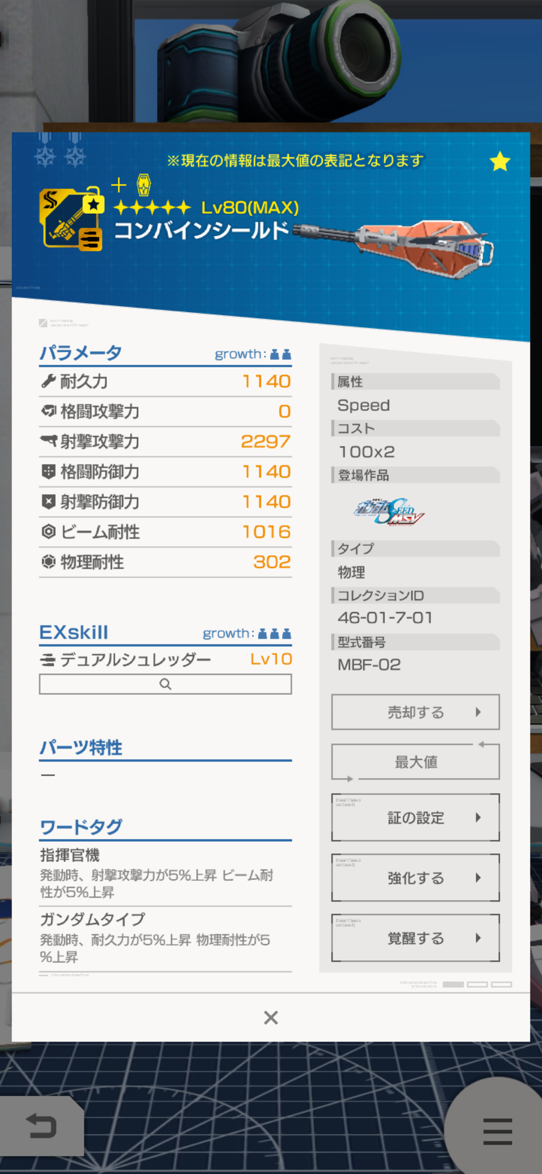 頭の射撃攻撃力や、腕の格闘攻撃力が優秀でアリーナコインで強化する価値はあると思います。
