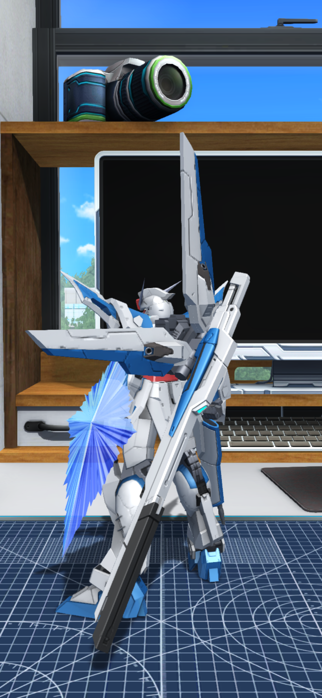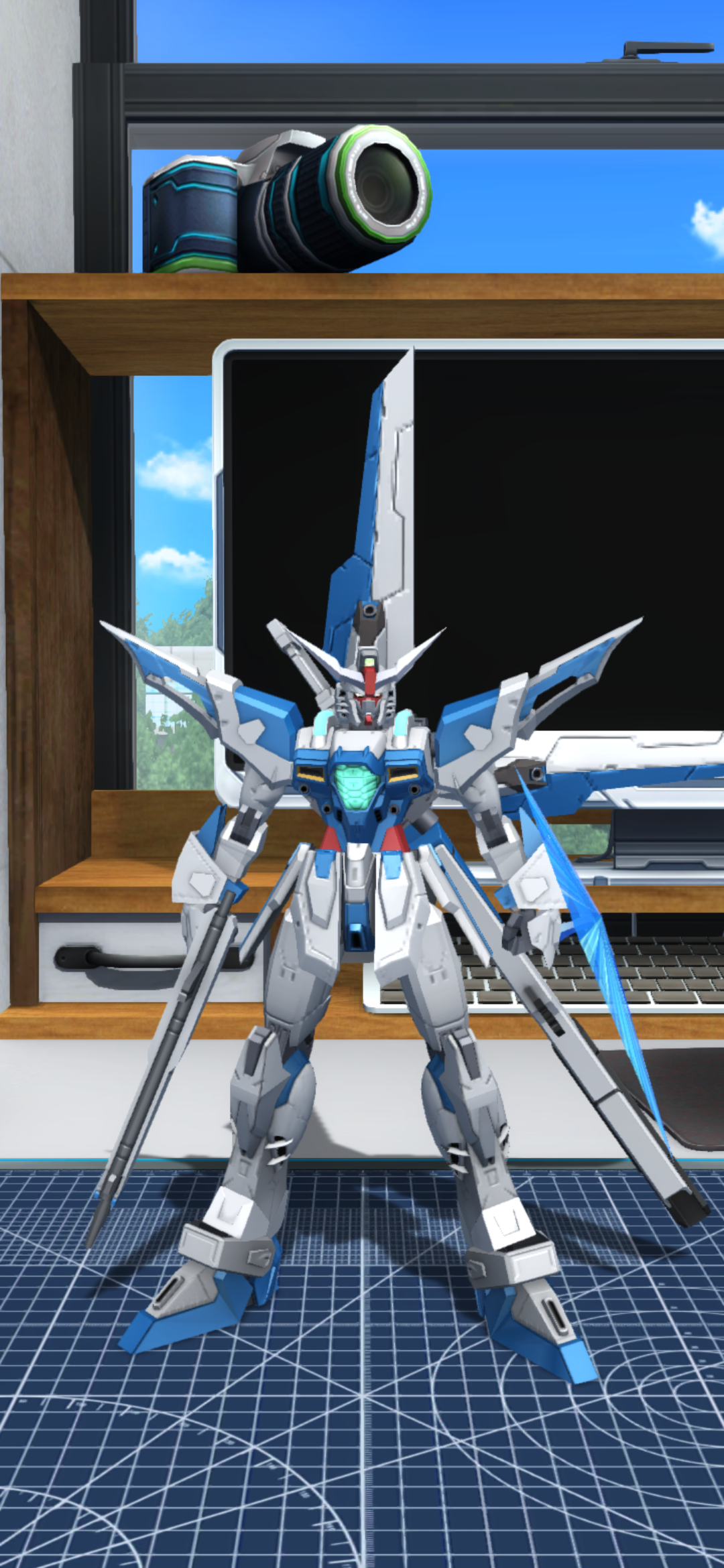 見た目、ディスティニーガンダムの改修機の様ですが・・・背中にサテライトキャノンを付けて打っている描写があるので何れ実装されるのでしょうかね?